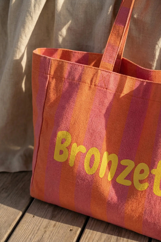 Bolso Tote Mujer Rayas Coral y Rosa Bronzette | Bolsa Playa Grande
