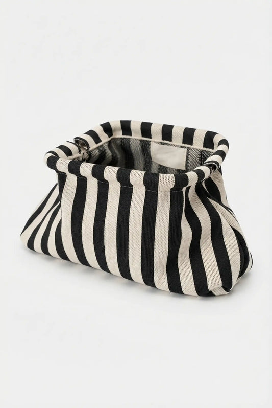 Bolso Clutch Mujer Rayas Negro y Beige | Neceser Playa Estilo Parisino