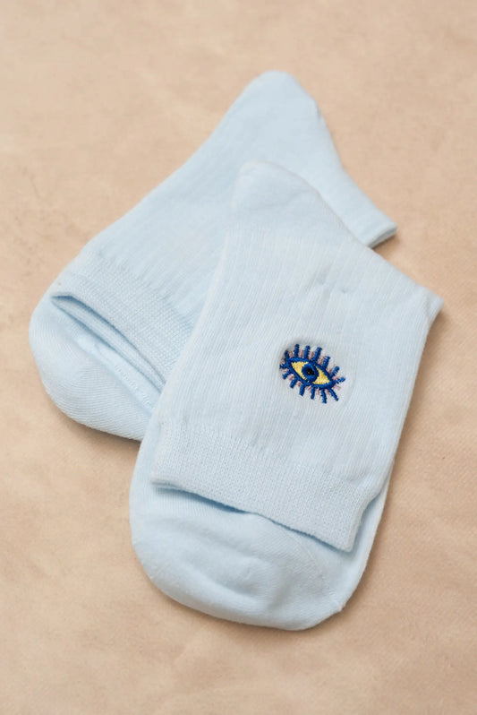 Calcetines Mujer Algodón Blancos con Ojo Azul | Calcetines Originales