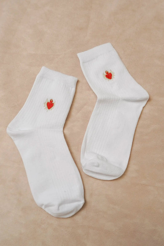 Calcetines Mujer Algodón Blancos con Corazón Bordado | Calcetines Originales