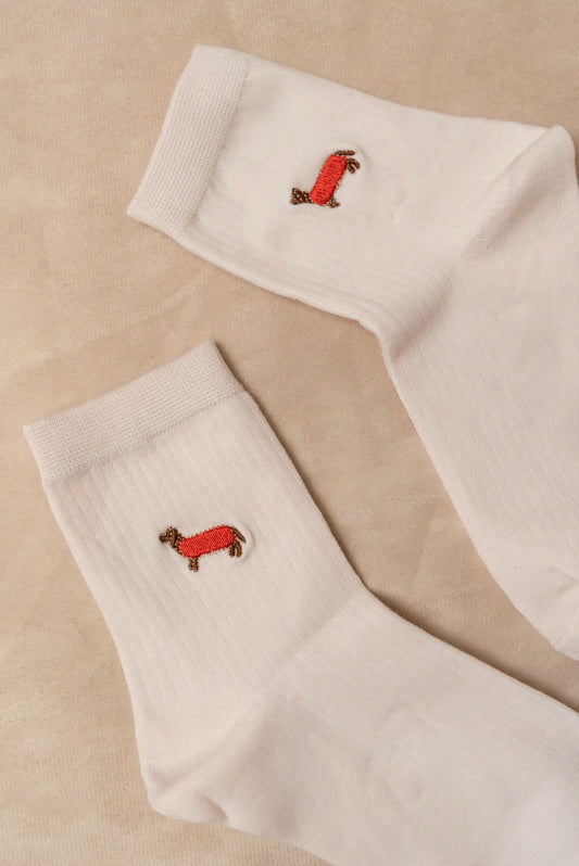 Calcetines Mujer Algodón Blancos con Perro Bordado | Calcetines Originales