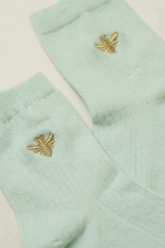 Calcetines Mujer Algodón Verdes con Abeja Bordada | Calcetines Originales