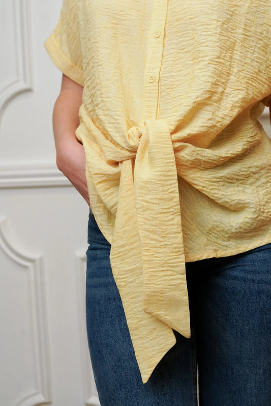 Camisa Mujer Amarilla con Nudo Delantero | Camisa Fluida Primavera