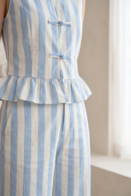 Chaleco Mujer Rayas Azul Peplum Algodón