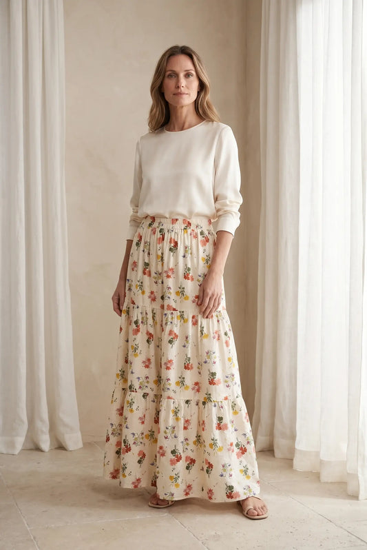 Falda Larga Mujer Floral Beige