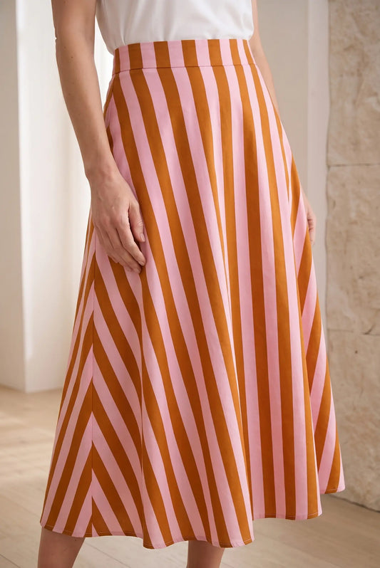 Las rayas verticales más alegres de la temporada llegan en vestidos y pantalones que estilizan y llenan de vida cualquier look.