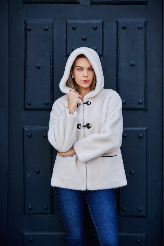 Abrigo mujer pelo sintético con capucha blanco Montblanc