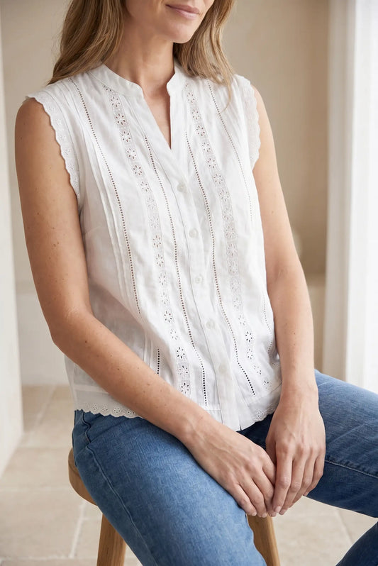 Camisa Mujer Sin Mangas Azul Celeste Bordada