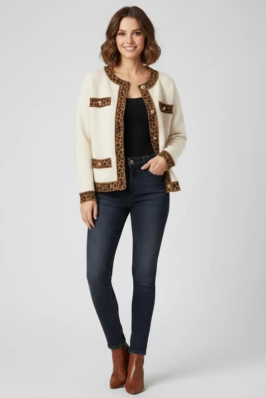 Chaqueta Mujer Blanco Roto Animal Print Entallada Elegante Versátil