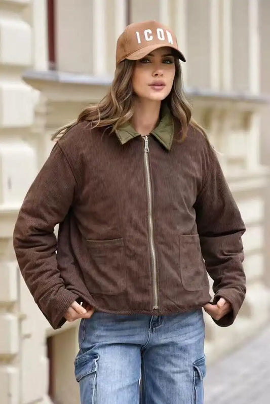 Chaqueta Mujer Reversible Verde Kaki y Pana Marrón Acolchada