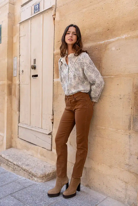Pantalón de pana marrón con botones dorados “Saint-Germain”