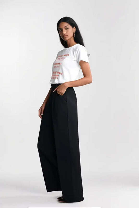 Pantalón negro de pinza pierna ancha cintura alta Elegance mujer