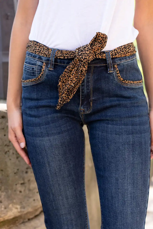 Pantalón Vaquero Recto Mujer Azul con Bordado de Mariposas