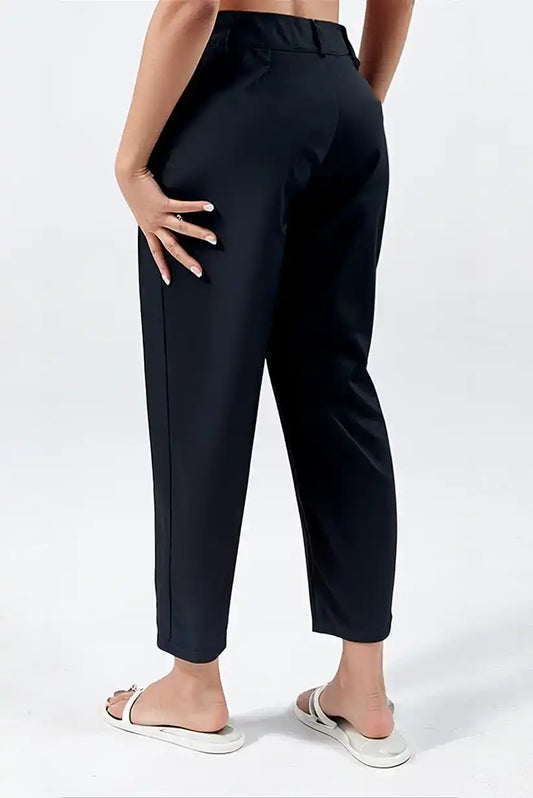 Pantalón De Vestir Mujer Negro Con Pinzas Corte Recto Elegante