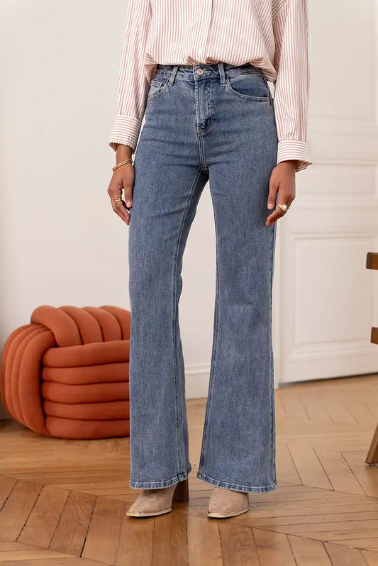 Pantalón Vaquero Campana Azul claro mujer Cintura Alta 5 Bolsillos