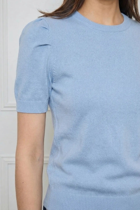Top Mujer Azul Pastel Manga Corta Jersey Fino Punto Primavera