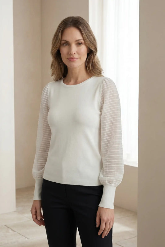 Jersey Mujer Blanco Manga Transparente Plisada punto