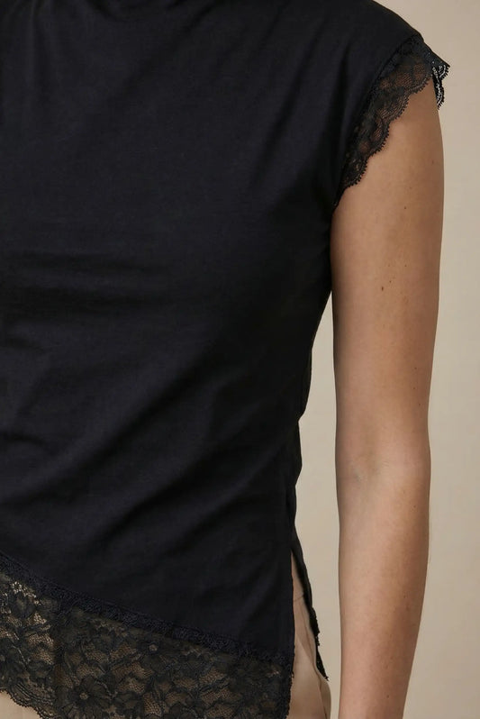 Top Mujer Negro con Encaje camiseta