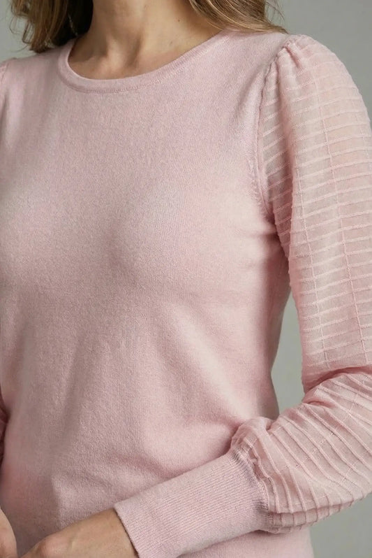 Jersey Mujer Rosa Pastel Manga Transparente Plisada punto