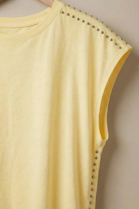 Top Mujer Amarillo Pastel Sin Mangas con Tachuelas