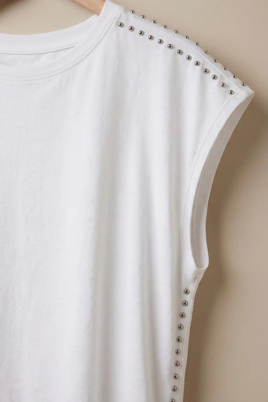 Top Mujer Blanco Sin Mangas con Tachuelas | Camiseta Algodón Moderna