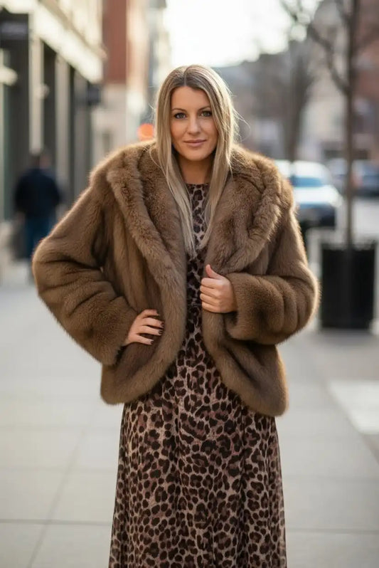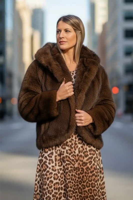 Abrigo de pelo sintetico marrón chocolate Alaska