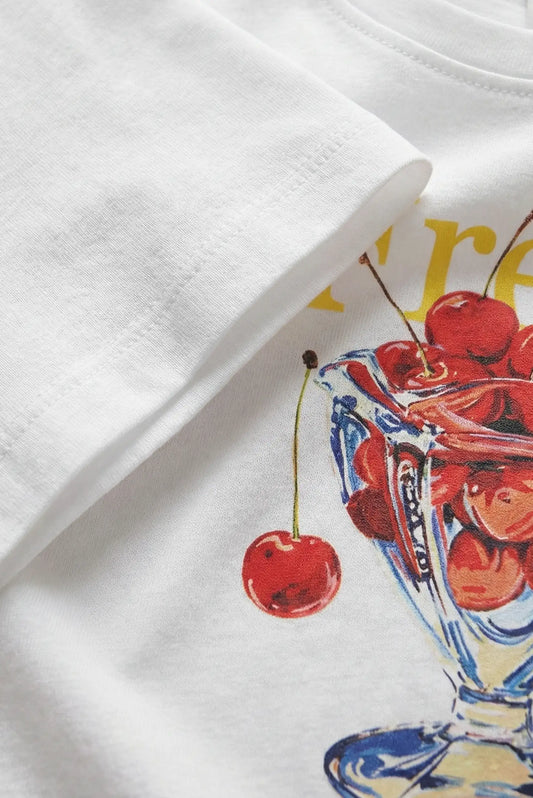 Camiseta blanca manga corta algodón elástico Real Fresh cerezas