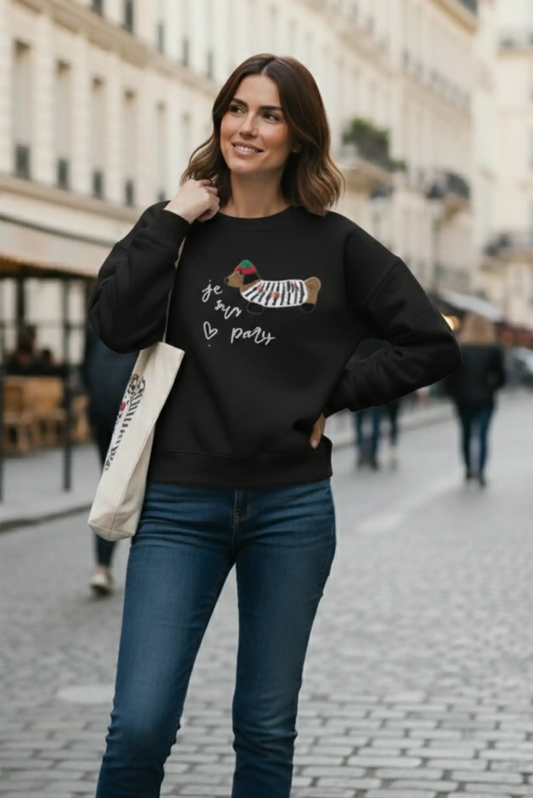 Sudadera negra mujer con bordado perro salchicha Je suis Paris