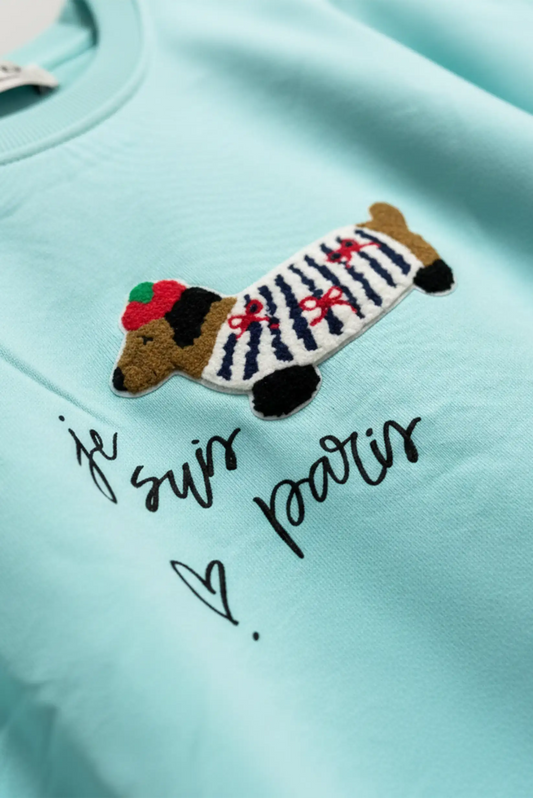 Sudadera verde agua mujer con bordado perro salchicha Paris