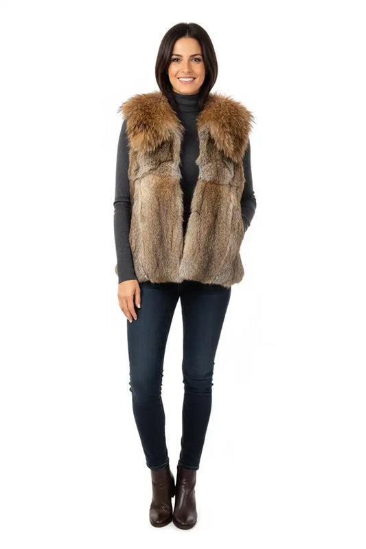 Natural Fur Vest for Women in Earth Tones, Elegant and Warm Autumn