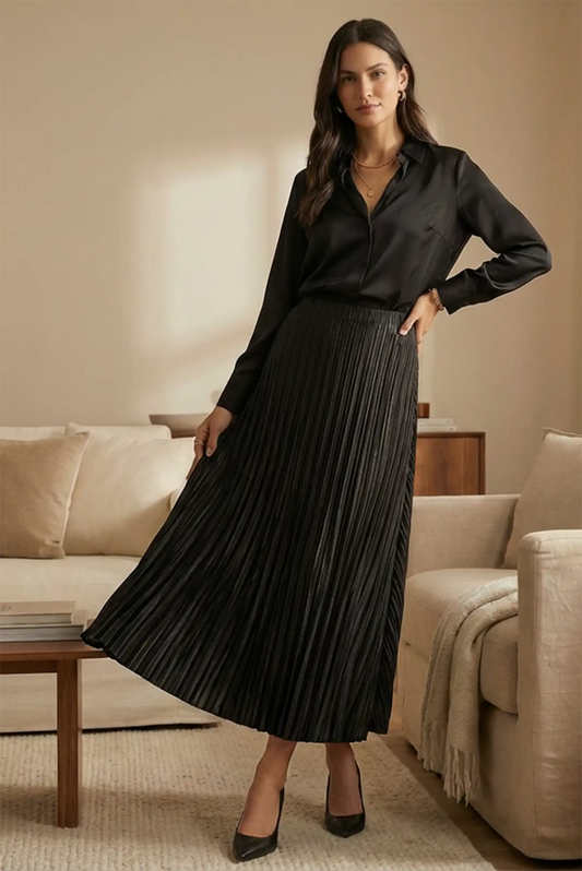 Les jupes plissées reviennent en force, ajoutant une touche féminine et chic à n'importe quel look. Qu'elles soient courtes, midi ou longues, ces jupes sont parfaites à associer à des chemisiers élégants ou des t-shirts basiques pour créer des tenues pleines de personnalité.
