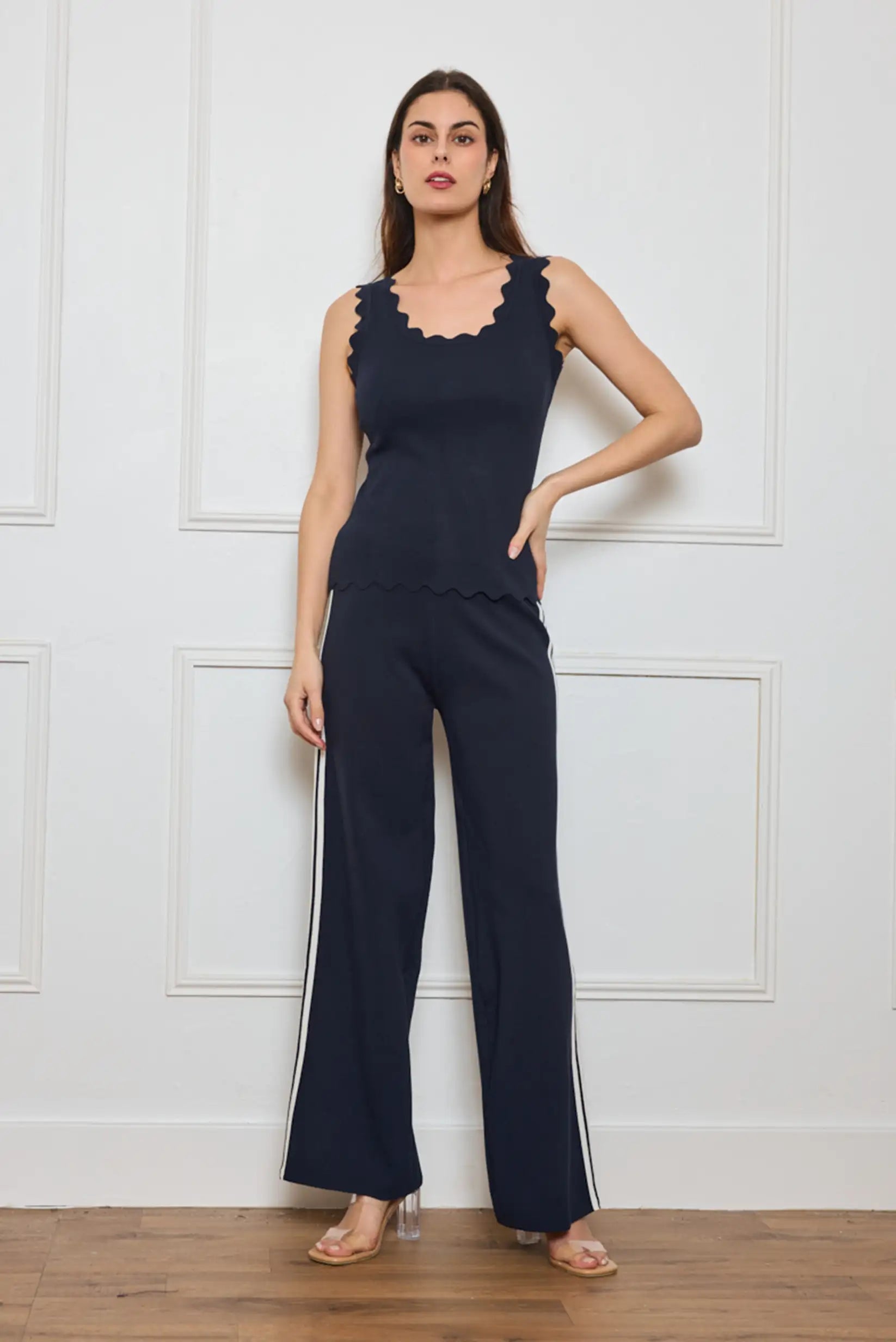 Top de punto sin mangas en color azul marino, elegante, atemporal y siempre favorecedor.