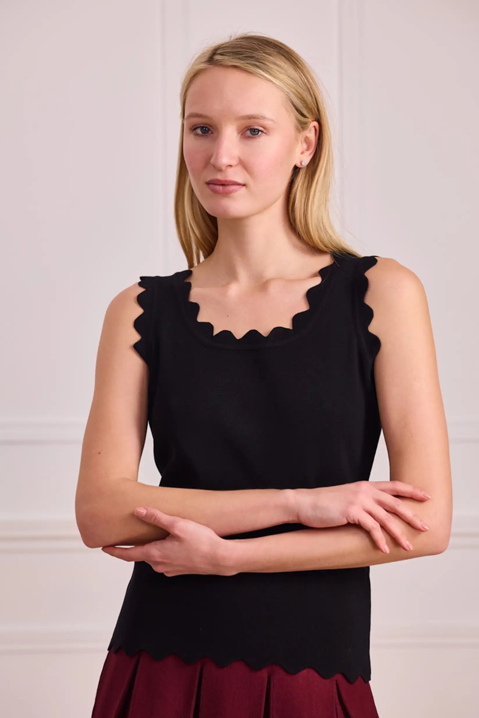 Top de punto sin mangas en color negro, elegante, versátil y siempre imprescindible.