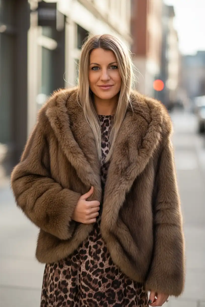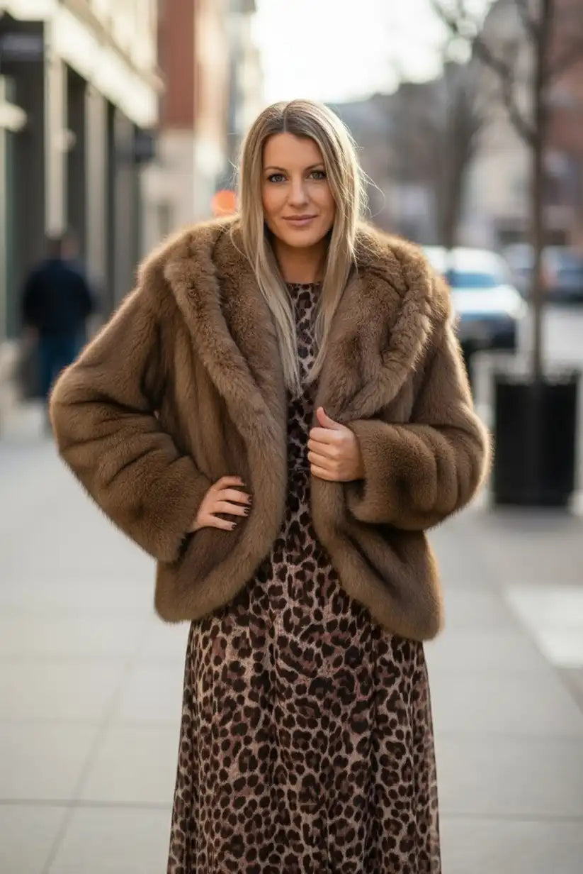 Abrigo de pelo sintetico marrón beige Alaska