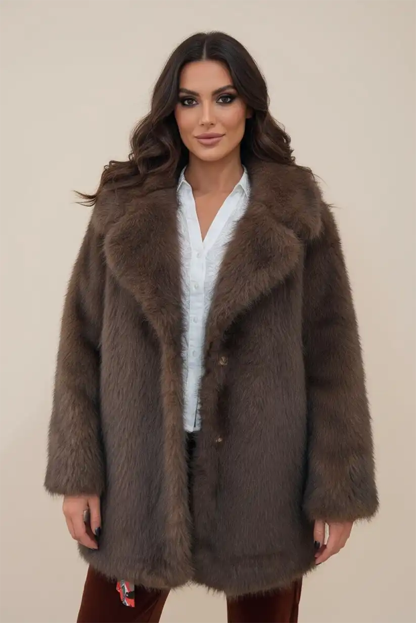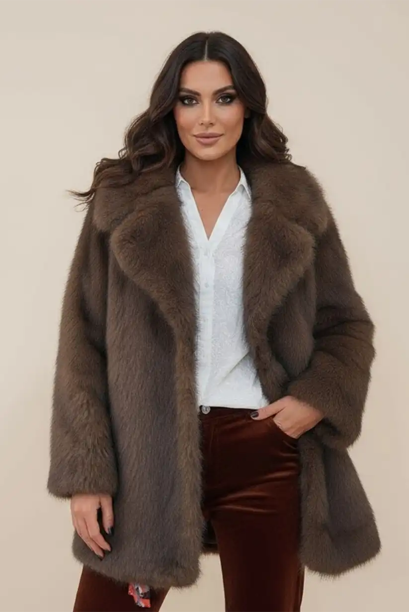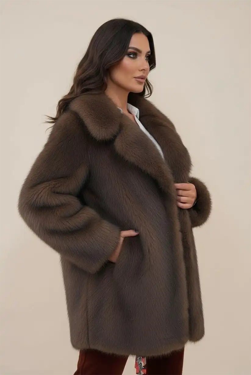 Abrigo Pelo Sintético Mujer Marrón Chocolate Vegano Sin Crueldad