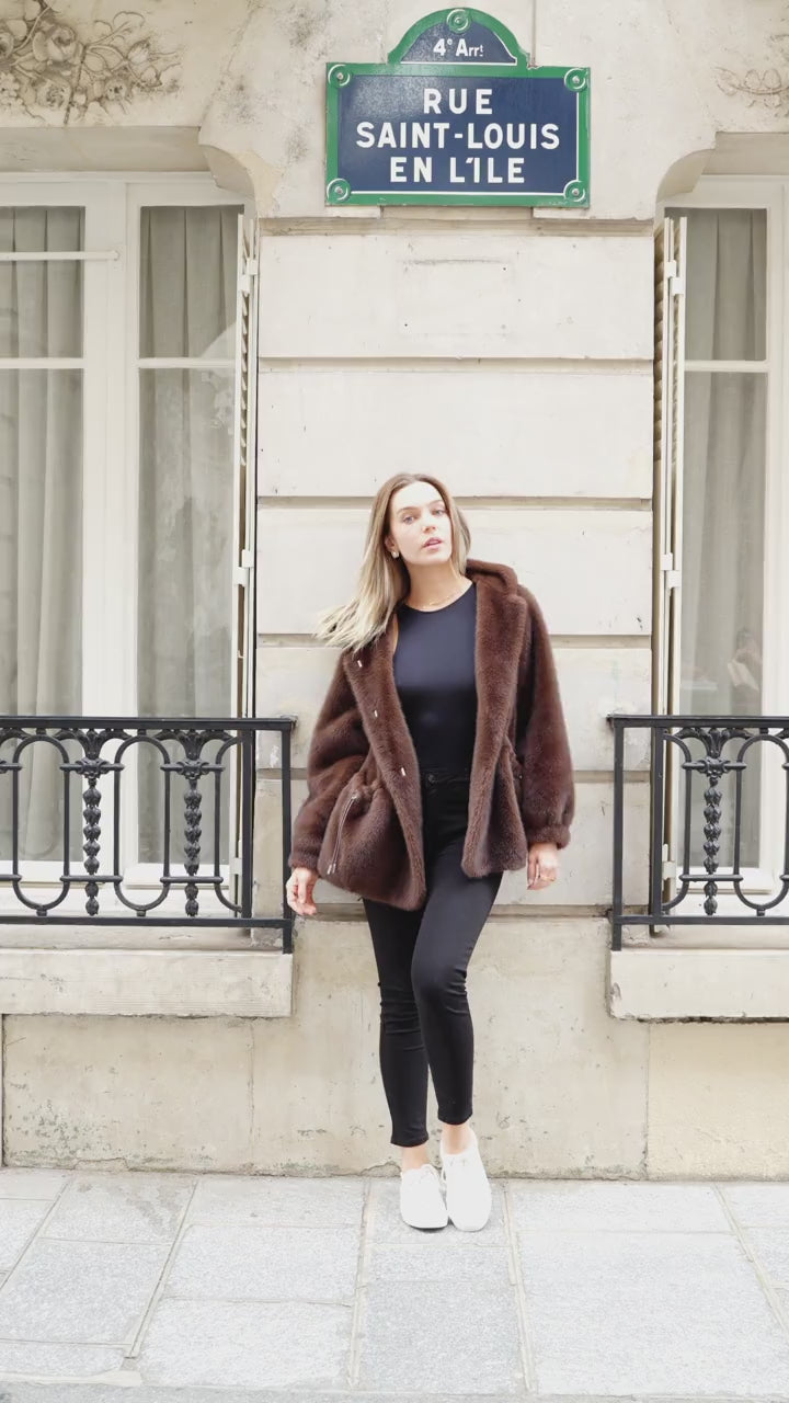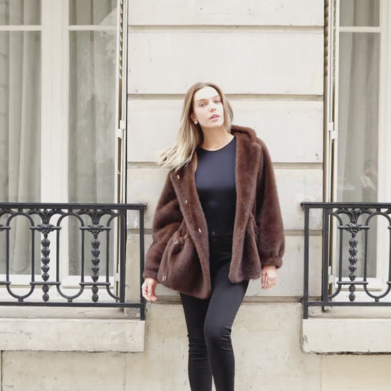Abrigo de pelo sintético marrón chocolate “Helsinki”