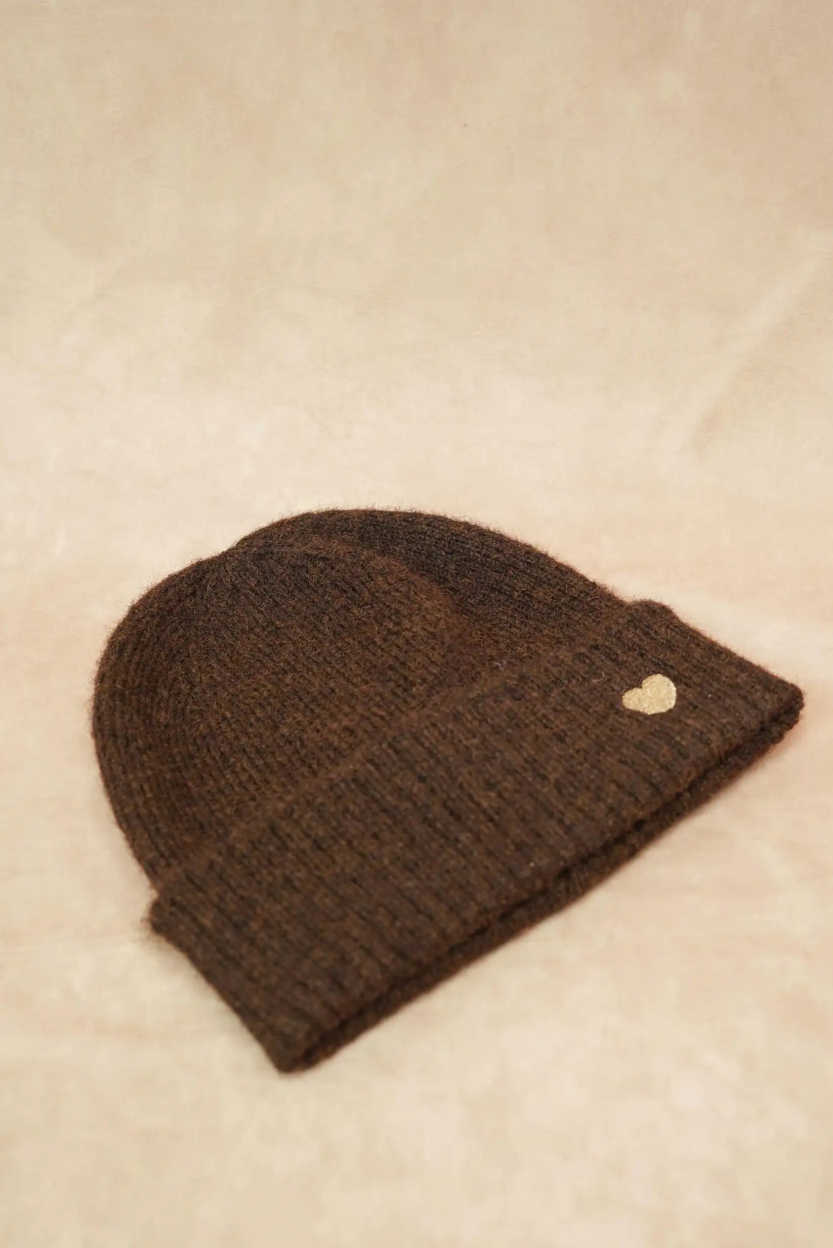 Gorro mujer marrón chocolate invierno corazón bordado